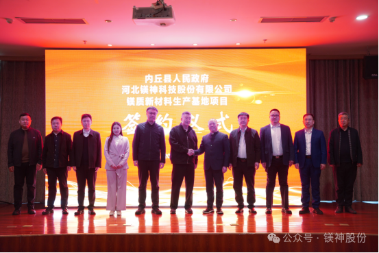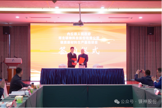2025年3月28日,河北鎂神科技股份有限公司與內(nèi)丘縣人民政府在阿爾卡迪亞酒店悅盛廳隆重舉行鎂質(zhì)新材料生產(chǎn)基地項目簽約儀式。該項目總投資20.25億元,選址邢臺市內(nèi)丘縣工業(yè)園區(qū),致力打造世界級高端鎂質(zhì)新材料生產(chǎn)基地,為區(qū)域經(jīng)濟(jì)高質(zhì)量發(fā)展注入新動能。